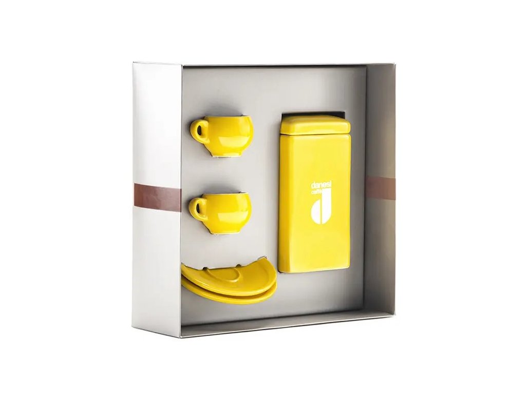 Danesi Duo Plus Set Yellow - Dark Cassette Coffee 250 g + 2 cups and 2 saucers - yellow