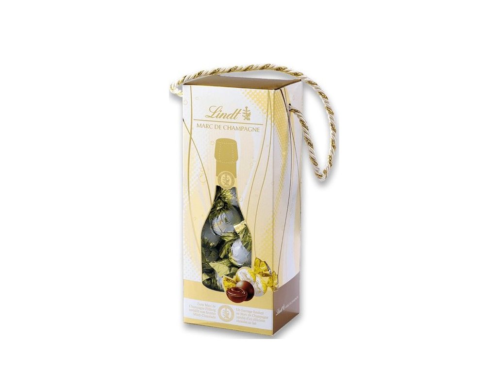 - Marc de Champagne pralines in a unique Christmas package. Shaped in the shape of a bottle and filled with a creamy chocolate liqueur with the flavor of Marc de Champagne, it will relieve any rushing heart and put you in the mood for Christmas.