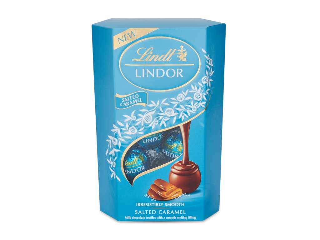 NEW! Irresistibly smooth LINDOR milk chocolate with salted caramel flavor.