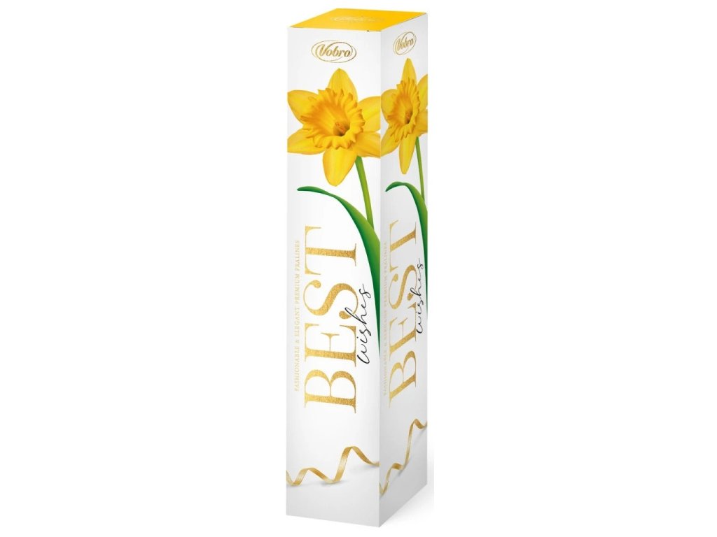 Looking for the perfect little thing that says "thank you," "thinking of you," or "all the best"? Vobro Best Wishes is an elegant mini box full of delicious chocolate pralines that will delight any sweet tooth.